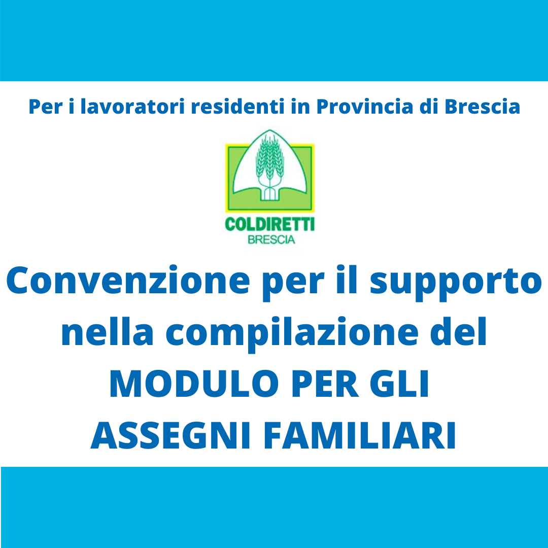 20 Luglio 2021Il Patronato COLDIRETTI è a disposizione dei Lavoratori residenti in Provincia di Brescia, per un supporto nella compilazione del modulo per la richiesta degli Assegni [...]
