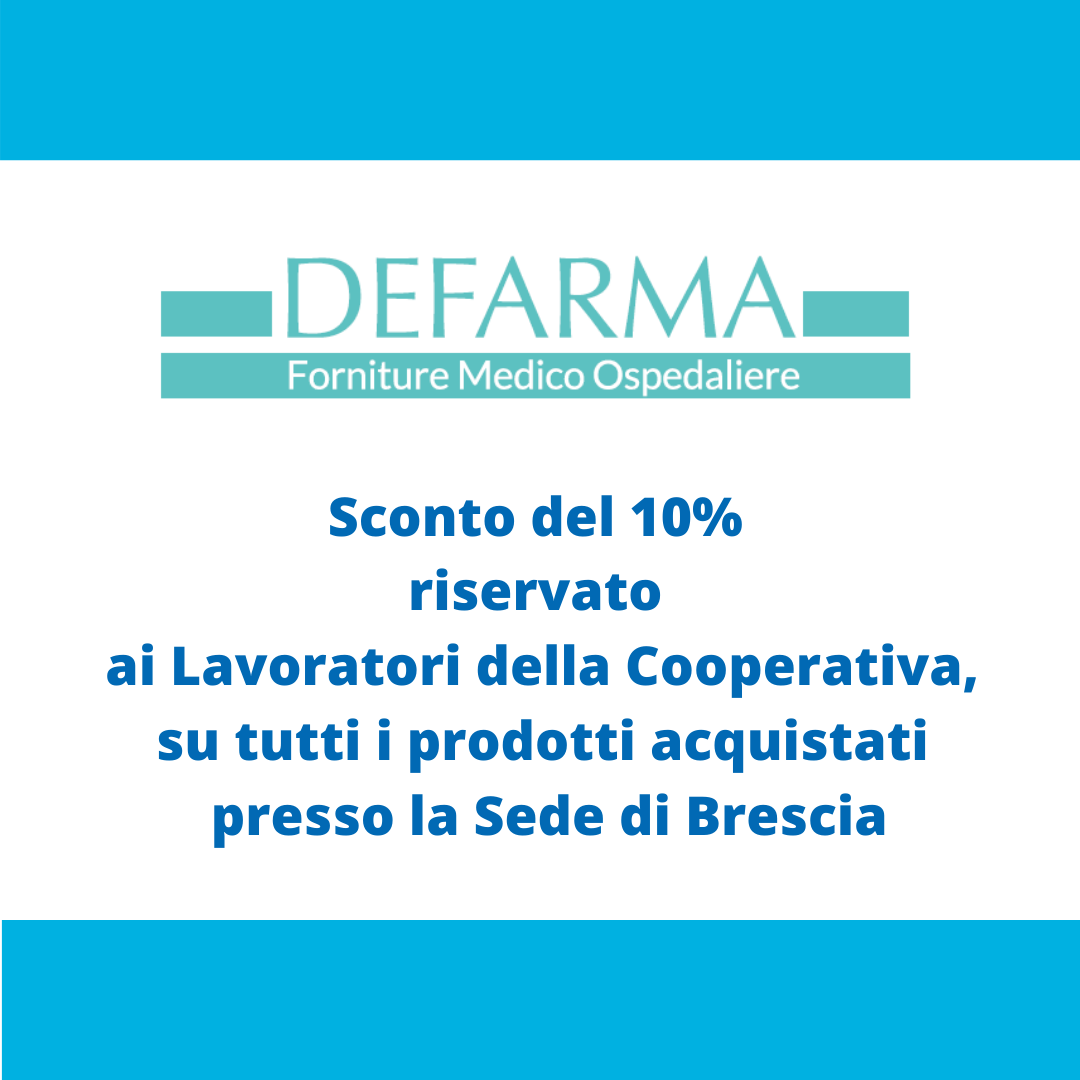 1 Settembre 2021La Cooperativa ha stipulato una convenzione destinata a tutti i lavoratori, che consente di acquistare i prodotti di DEFARMA s.p.a. presso la Sede di Brescia [...]