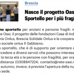 presentato nei giorni scorsi a Brescia. Il progetto nasce dal lavoro congiunto di Fondazione Casa di Industria onlus, Fondazione Brescia Solidale onlus e “Il Gabbiano”, cooperativa sociale onlus, che hanno dato vita ad un innovativo punto di riferimento per tutti i bisogni delle persone fragili, principalmente anziani, ma non solo.