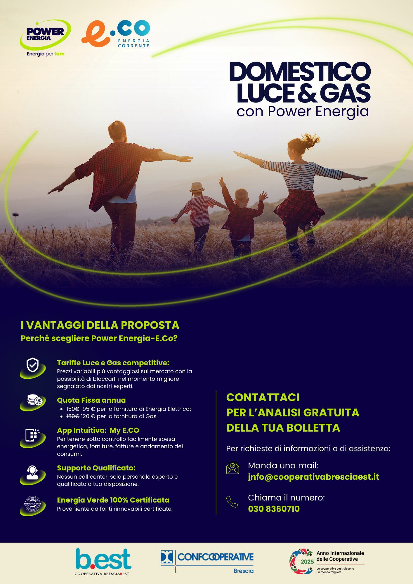 Convenzione con Cooperativa Brescia Est per la fornitura di energia elettrica e gas