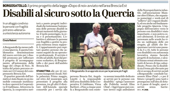 Cosa dicono i giornali locali dell’inaugurazione di QUERCIA, la sperimentazione che si inserisce all’interno del Progetto di Accompagnamento all’Autonomia, Legge 112/2016, “Dopo di Noi”.